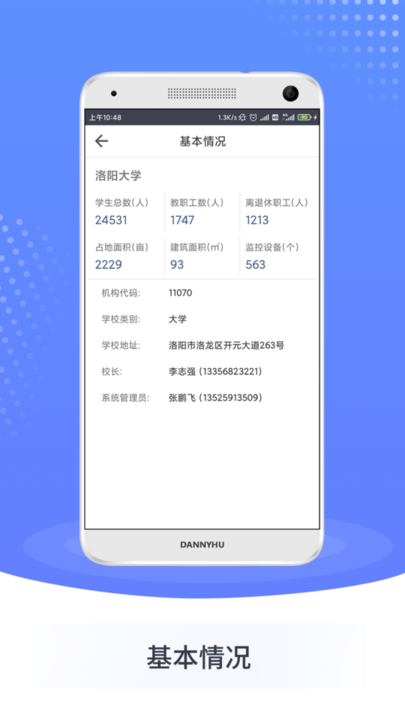 系统实现对学校基本情况的查看,可进行双重预防体系要求下的风险辨识管控、隐患巡查治理的数据管理与应用,兼顾卫生健康、危险实时监测和安全应急等信息管理功能。