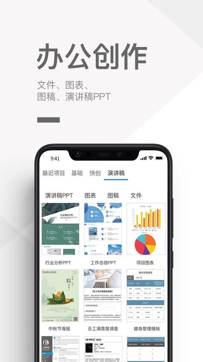 优马快创app是一款功能强大的办公服务软件。随时随地办公创作,操作便捷,各种丰富的办公文件模板,免费使用,大大提升你的办公效率,还能与你的团队成员一起编辑文档和表格,并且每一次的改动都会实时保存,同步到云端,有需要的小伙伴们就快来下载使用吧!