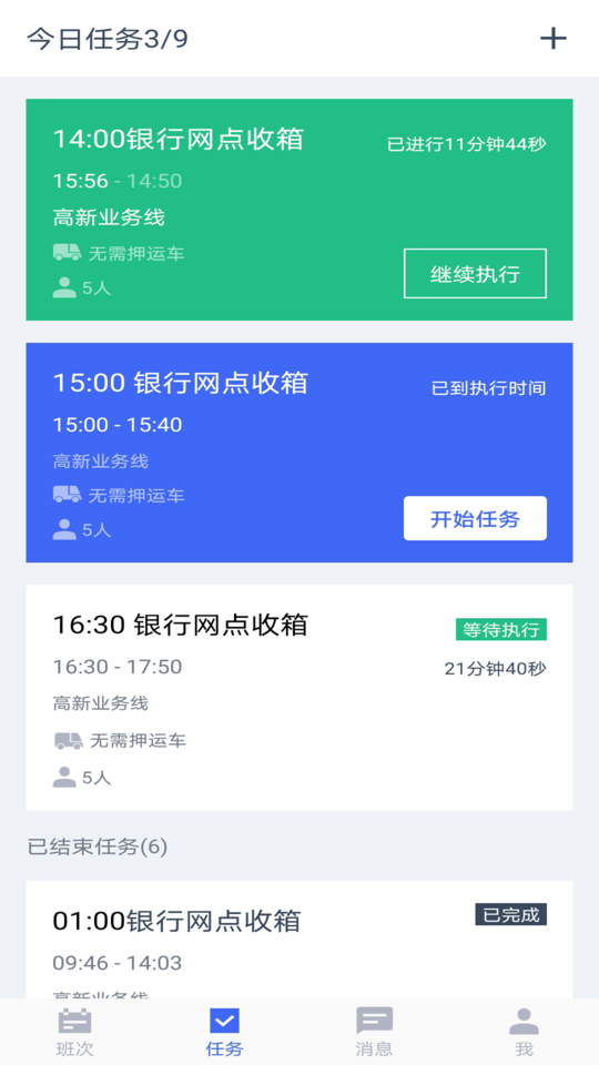 1.网点线路智能规划,并且进行时间点智能归还,班次正常开始、结束、切换,支持多押运班次执行体系;