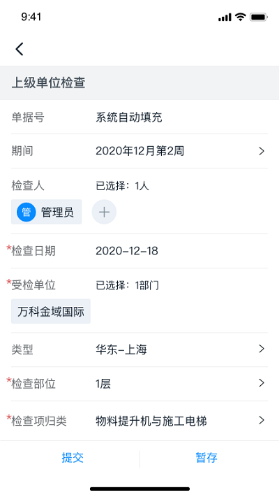 5、【生产管理】现场的施工生产员在作业完成后,及时提交完工信息,通知相应质量员进行质检验收。