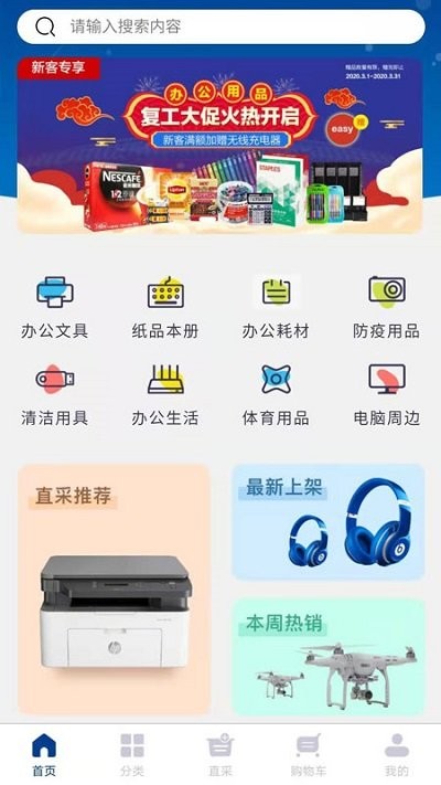 1、具有办公用品采购、政企直采、商品搜索、浏览、购买、支付等在线功能