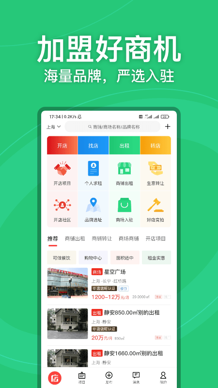 店店旺,拥有上百万个品牌招商加盟项目和商铺信息,涵盖各行各业,覆盖全国大多数省市区,一站式解决创业者开店找项目、找店铺的需求.为创业者提供海量优质加盟项.
