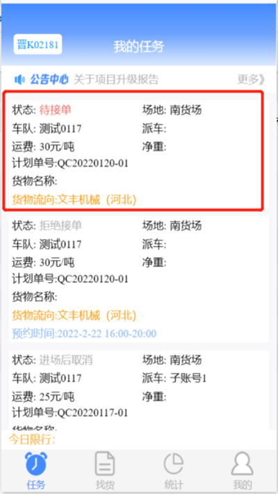 ·货运司机接单预约板块中司机根据生成的运单进行接单操作,并预约进入货场的时间,为货场管控车辆提供信息支持