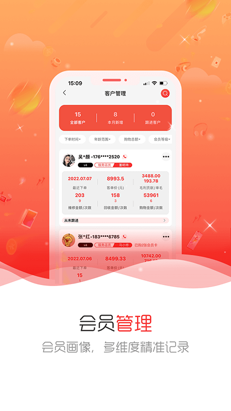 2.所有的会员信息都可以通过手机来进行管理,详细的数据都可以及时的记录。