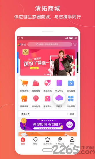 清拓是一个手机端的网上购物app,本着让消费者快乐消费、经营者业绩倍增、让参与者提高生活品质、让创业者创造机遇与财富的原则,优化现阶段网购存在的不良环境,为使用电商的不同人群提供不同的拓客方案.