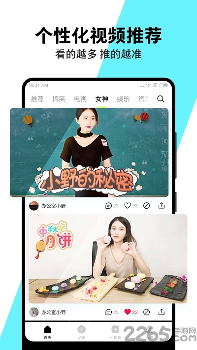 小米快视频2.3.2版本是基于个性化推荐的短视频产品,为您提供海量短视频内容,让你随时随地畅享视听盛宴!利用大数据精准计算您的兴趣,涵盖搞笑、娱乐、美女、资讯、猎奇、科技、影视、游戏、生活、汽车、萌娃萌宠等分类,你想看的,都在这里。