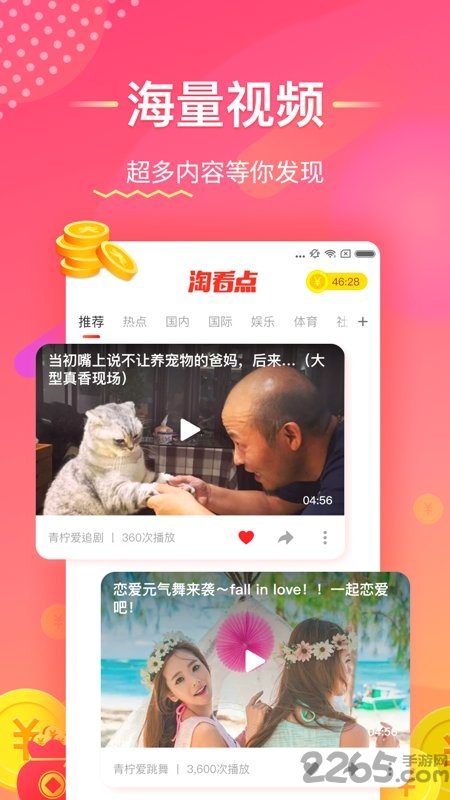 淘看点短视频手机版是一款手机短视频软件,软件内有海量的有趣视频文件,用户可以在这里免费的观看,各种各样的有趣短视频,让你乐不停,还可以自己拍摄有趣的视频上传,和其他人分享你的快乐,非常的有趣好玩,感兴趣的朋友来下载吧!